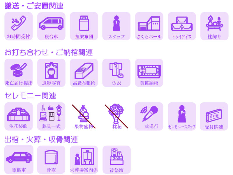 オプション商品が無くても、お葬式はできます。さくらホールご利用時、お持ち込み可能。